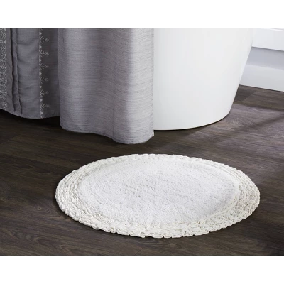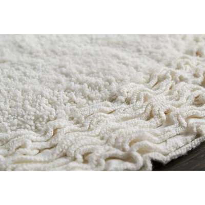 Simple yet elegant, the Jackie rug makes a beautiful addition to any space. This tufted design features a unique circular design with ruffled trim. It can be used in the bath, kitchen, or any space you choose. Use of a rug pad is recommended; not included.