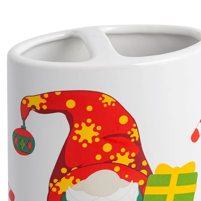 Add a whimsical holiday touch to your bathroom with the Gnomes 3-Piece Bath Accessory Set by Allure Home Creation. This festive novelty set includes a Lotion/Soap Pump, Toothbrush Holder, and Tumbler. Each piece is decorated with an adorable gnome with a long beard and an oversized stocking cap. These personable characters will bring the joy of the holiday season to your home. Made of 100% decaled ceramic. Hand wash.