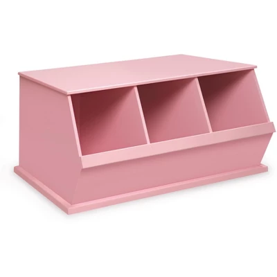 Badger Basket’s Three Bin Stackable Storage Cubby/Bin is a sturdy, modular storage solution for keeping all sorts of items tidy. Features three generously sized open bins that can be stacked with other bins to expand your storage capacity (each bin unit sold separately). Can be used for storing books/magazines/newspapers, toys, winter accessories, sporting goods, videos/DVDs/CDs, craft supplies, linens, and more! Three-bin design helps with sorting and separating items. Wide mouth bin openings make it easy to load and unload. When you need to clean up quickly, it is a breeze to stuff everything inside! Great for kids when learning to sort, organize, and clean-up. Top surface offers an additional place to stack books, drop your purse, or arrange picture frames and keepsakes. For more storage, stack additional units (sold separately) next to or on top. Solid panel construction ensures that your treasured items stay inside the unit – nothing falls out the back or sides. Smooth surfaces are easy to clean and maintain. Badger Basket’s Three-Bin units mix and match with Badger’s Two-Bin units and Badger’s Shelf Storage units. Made with engineered wood. Painted finish. Metal hardware. Overall unit measures approximately 37.25 inches L x 19.25 inches W x 17.125 inches H. Each bin measures 11 inches L x 17.5 inches W x 15.6 inches H. Height from floor to top edge of front panel is 9 inches. Assembled weight: 37 pounds. All measurements approximate. Wipe clean with a damp cloth and mild detergent as needed and dry thoroughly. Adult assembly required. Illustrated assembly instructions included. Non-toxic painted finish. Product complies with all currently applicable safety standards and CARB ATCM standards. Some soft plastic/rubber toys (such as balls) can react with and cause damage to the finish when left in prolonged contact. Be mindful of what is stored in the unit and regularly check toys and the unit to prevent damage. When stacking multiple bins, you must always use the included safety brackets to secure the units together. If stacking three or more bins high, we recommend using wall anchor/furniture safety straps (not included) to anchor the units to the wall for safety and stability. Wall anchor straps are not included due to the many types of walls found in homes. Please consult with your local hardware retailer about your particular walls, home, and necessary hardware. Product may vary slightly from shown and described. Props/accessories shown are for illustration purposes only and are not included with the product. Actual color/finish may vary slightly from screen display. This item ships in its original carton that may include a product photo.