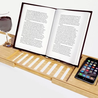 Keep all your little luxuries within reach with this Hastings Home Bamboo Bathtub Tray and Bathroom Decor. This convenient bathroom organizer features a holder for your wine glass or coffee cup plus plenty of space for soap, candles, and reading materials. Choose from three notches on the integrated metal support to safely hold your book, tablet, or phone in the perfect position while you soak.