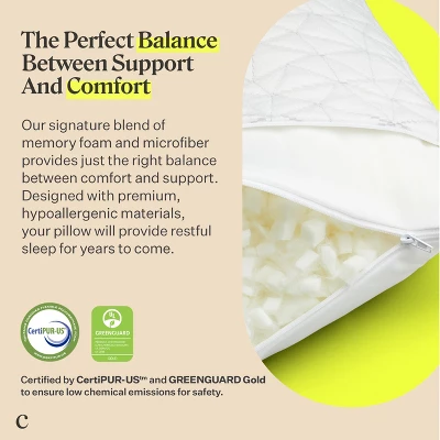 Coop Home Goods 20”x 54″ Adjustable Memory Foam Body Pillow, Support Pillow – GREENGUARD Gold Certified – Lulltra Washable Cover – White (1 Pack)