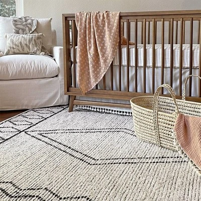 The natural artisanal style of our Ezra Rug combined with the light + dark contrast of the bohemian design is sure to captivate your little one and elevate the style of your nursery. Created in limited batches in India, this striking design is truly original. 100% cotton and woven entirely by hand, making every piece beautifully unique. Style with our Crane Baby bedding for a curated look. Thoughtfully and ethically sourced.