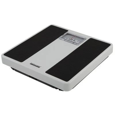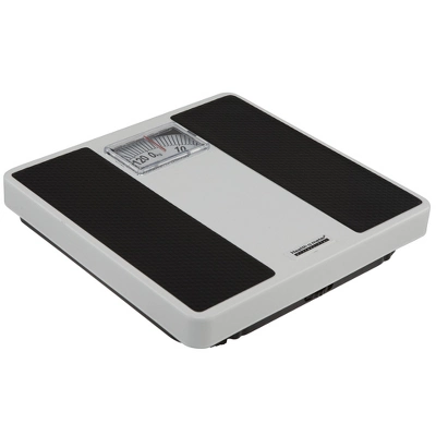 The Health-O-Meter Analog Bathroom Floor Scale is a durable and functional tool for weight tracking. With its non-skid mat, large dial display, analog design, step-on platform, and compact dimensions, this scale provides convenience, accuracy, and reliability for individuals seeking to monitor their weight and maintain a healthy lifestyle. The large dial display offers clear and easy-to-read weight readings. Its analog design provides a timeless and familiar experience, allowing you to quickly and accurately track your weight. With a maximum weight capacity of 270 lbs (122 kg), this scale accommodates a wide range of users. Whether you’re starting a weight loss journey or maintaining a healthy lifestyle, this scale has got you covered. With dimensions of 10 inches x 10 1/4 inches, this scale has a compact footprint, making it suitable for bathrooms of all sizes.