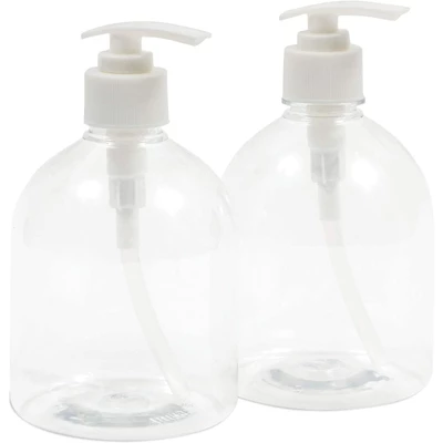 Make your bathroom and countertops stand out with this set of clear plastic pump bottle dispensers. The dispensers are great for holding liquid soap and looks great in any setting, including businesses, cafes, shops, kitchens, and bathrooms. DIMENSIONS: The clear refillable bottles hold approximately 17 ounces and measures 3.3 x 5.8 inches.