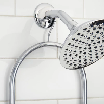 Add extra, instant storage to your shower with the Shower Caddy from mDesign. Three baskets hold soap and shampoo and two double hooks keep razors and loofahs at your fingertips. Store shampoo and conditioner bottles upside down in the holes on the top shelf to make pouring and dispensing simple and easy. Baskets comfortably fit both small and large bottles. The gridded design lets water drain away, ensuring items dry completely and quickly between every use. Install instantly by simply hanging over the shower head with the hanger hook-don’t worry about it not staying put, two suction cups help keep it in place.