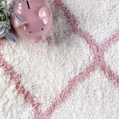 Add some comfort to your childÂ’s room with this charming kidÂ’s shag area rug. This floor covering has a gorgeous pink trellis pattern that will complete any room that it is placed in. Machine made of soft polyester; this rug will feel luxurious with every step. To capture the lavish essence of your new area rug upon arrival, we recommend to gently fluff the shag rug by using a stiff brush, vacuum safe for high-pile rugs or your hand. Create long lasting memories with your loved ones with our easy to care for and pet-friendly area rugs.