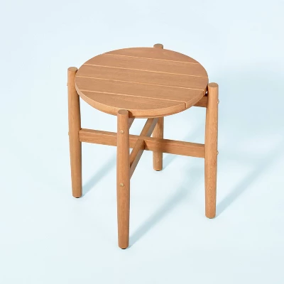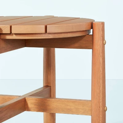 This Slat Wood Outdoor Round Accent Table from Hearth & Hand™ with Magnolia makes a practical addition to your backyard, patio, deck or any other outdoor space. It features a rounded shape with a slatted top for resting your favorite drink, book or small potted plant. The weather-resistant finish allows for use season after season, and the natural frame color coordinates with any decor. Place it next to your outdoor sofa or in between your favorite outdoor chairs.