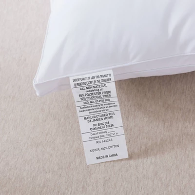 Create a luxurious experience with this amazing Charcoal Blend filled pillow from St James Home. The charcoal blend in the fill for these pillows features odor-reducing and antimicrobial properties to keep you feeling fresh all night long. This pillow also offers medium support for back sleepers to keep you comfortable all nigh long.
