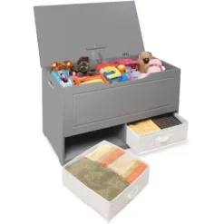 Up And Down Toy And Storage Box And Bench With Two Baskets – Gray