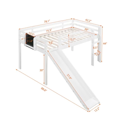 - [Intimate and Fun] This loft bed is equipped with a blackboard on one side, and the chalk slot is thoughtfully designed. Customers can pick up chalk at any time and write down their colorful dreams and imaginations in the form of drawing and writing. What’s more, the chalkboard can be placed on the front or side.