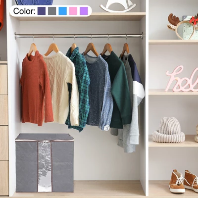 Why Choose Clothes Storage Bags Large Capacity Clothes Storage Bins Foldable Closet Organizers?Made of three-ply composite non-woven fabric, sturdy and durable, odorless, protect your clothes from dust and moisture.A see-through window in the front allows you to quickly see what is stored inside the totes for storage.Lightweight, portable, and foldable storage bags allow them to be easily stored to save space when not in use.A two-way zipper allows it to easily slide along the closure when in use, preventing dust from entering, and keeping your clothes neat and tidy.The reinforced handle with two layers of thick fabric to prevent tearing. The handle seams for added strength for easy portability and transport.A clothing storage bag is suitable for storing your Comforters, blankets, jackets, or other clothes for changing seasons.Specification:Material: Non-Woven FabricsApprox size: 50 cm x 36 cm x 50 cm/19.69inch x 14.17inch x 19.69inchApplication: Suitable for storing clothing, blankets, quilt, Comforters, etc.Folding: The clothes storage bag is folding, easy to carry and store when not in use.Package included: 2pcs Storage BagNotice:Please allow 1-3cm deviation due to manual measurement.Actual color may be slightly different from the image due to different monitor and light effect