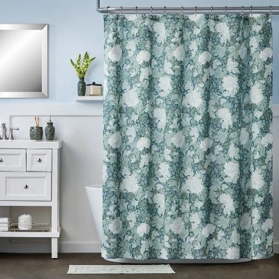 London Floral is part of the Vern Yip by SKL Home Collection. This collaboration with famed interior designer, Vern Yip, and SKL Home, brings a modern twist to traditional patterns, mixing fashion and function. London Floral brings classic elegance to your home in rich shades of green. This lightweight fabric shower curtain features an elaborate pattern of flowers and leaves. 12-buttom holes line the top for easy hanging. Use of a liner is recommended; liner/hooks sold separately. Shop the full London Floral collection to complete the look.